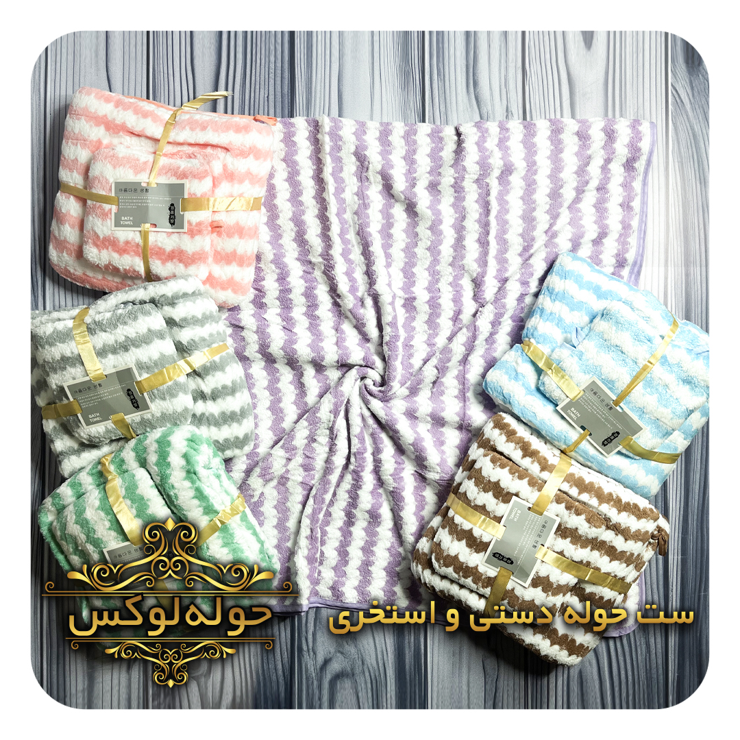 ست حوله استخری به همراه حوله دستی پولیشی طرح جناغی