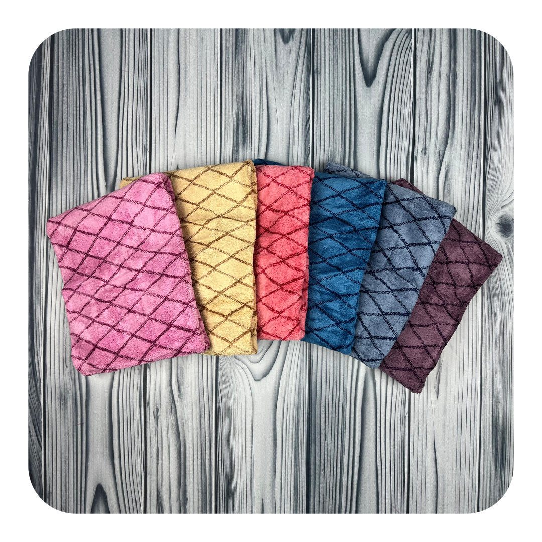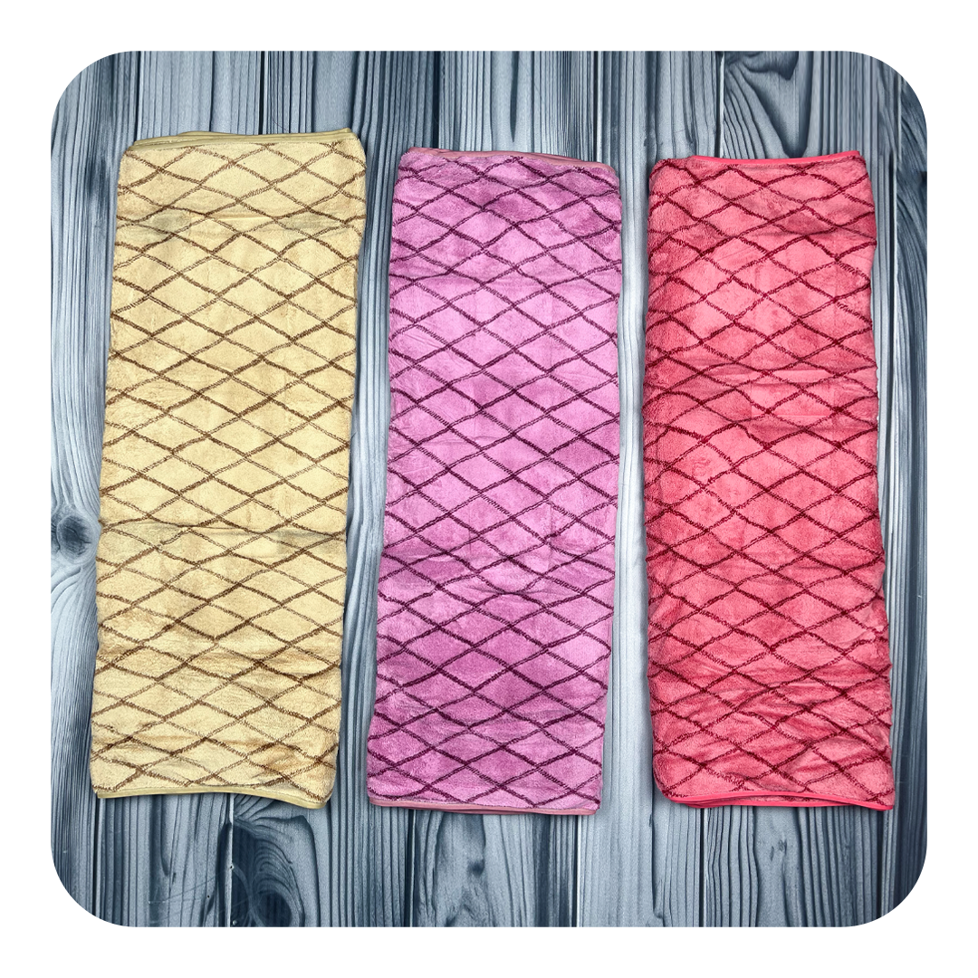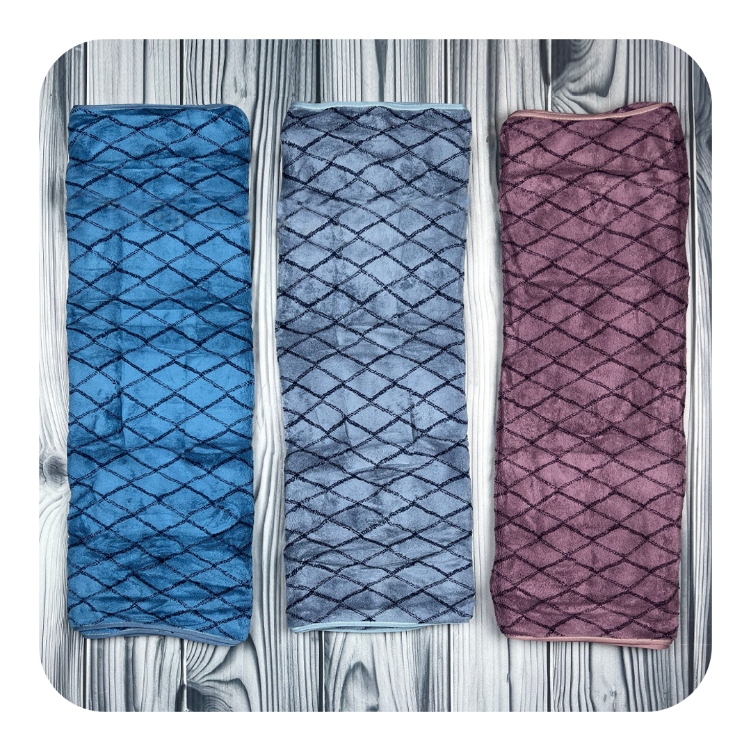 ست حوله استخری به همراه حوله دستی پولیشی طرح لوزی