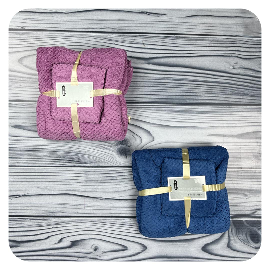 ست حوله استخری به همراه حوله دستی پولیشی طرح شکسته