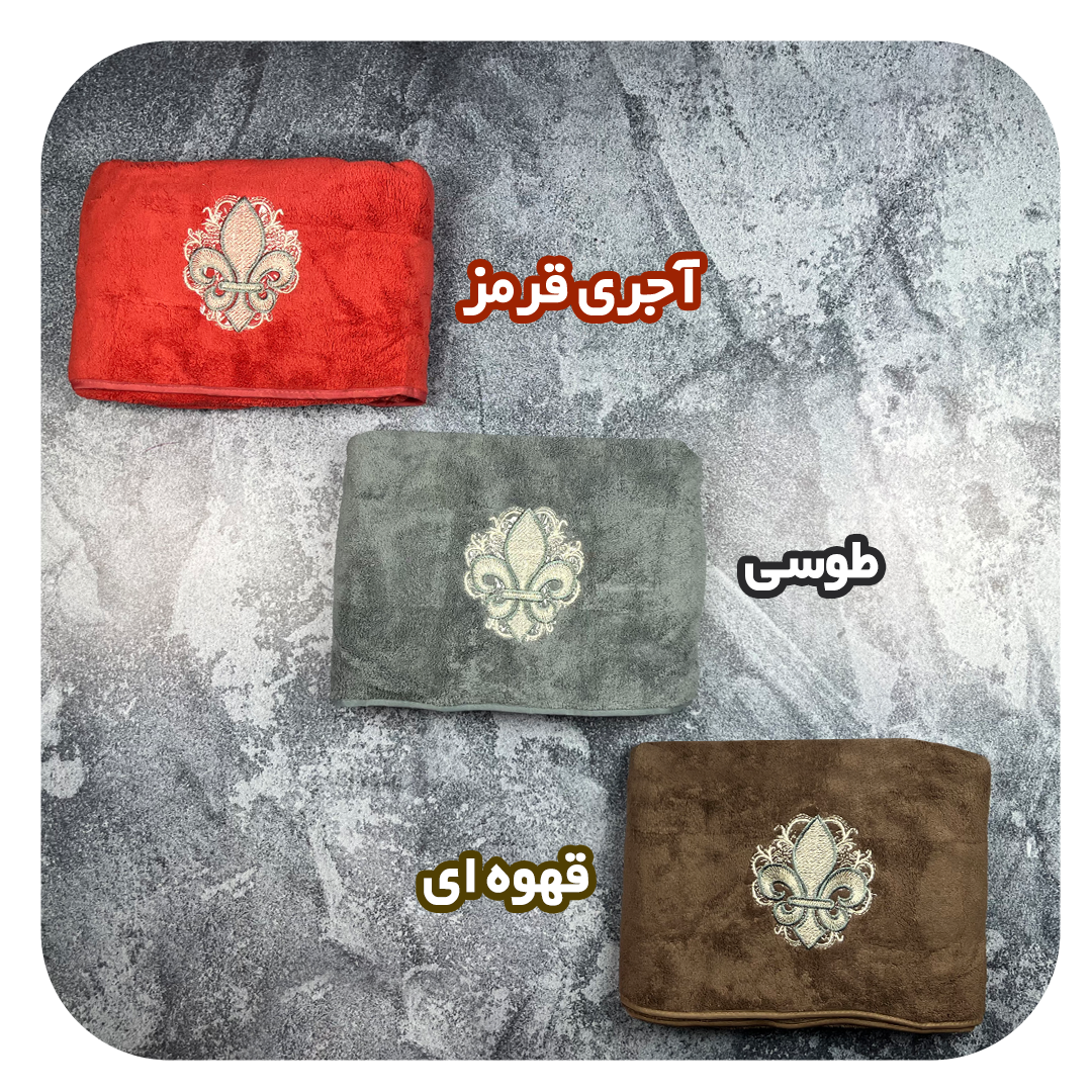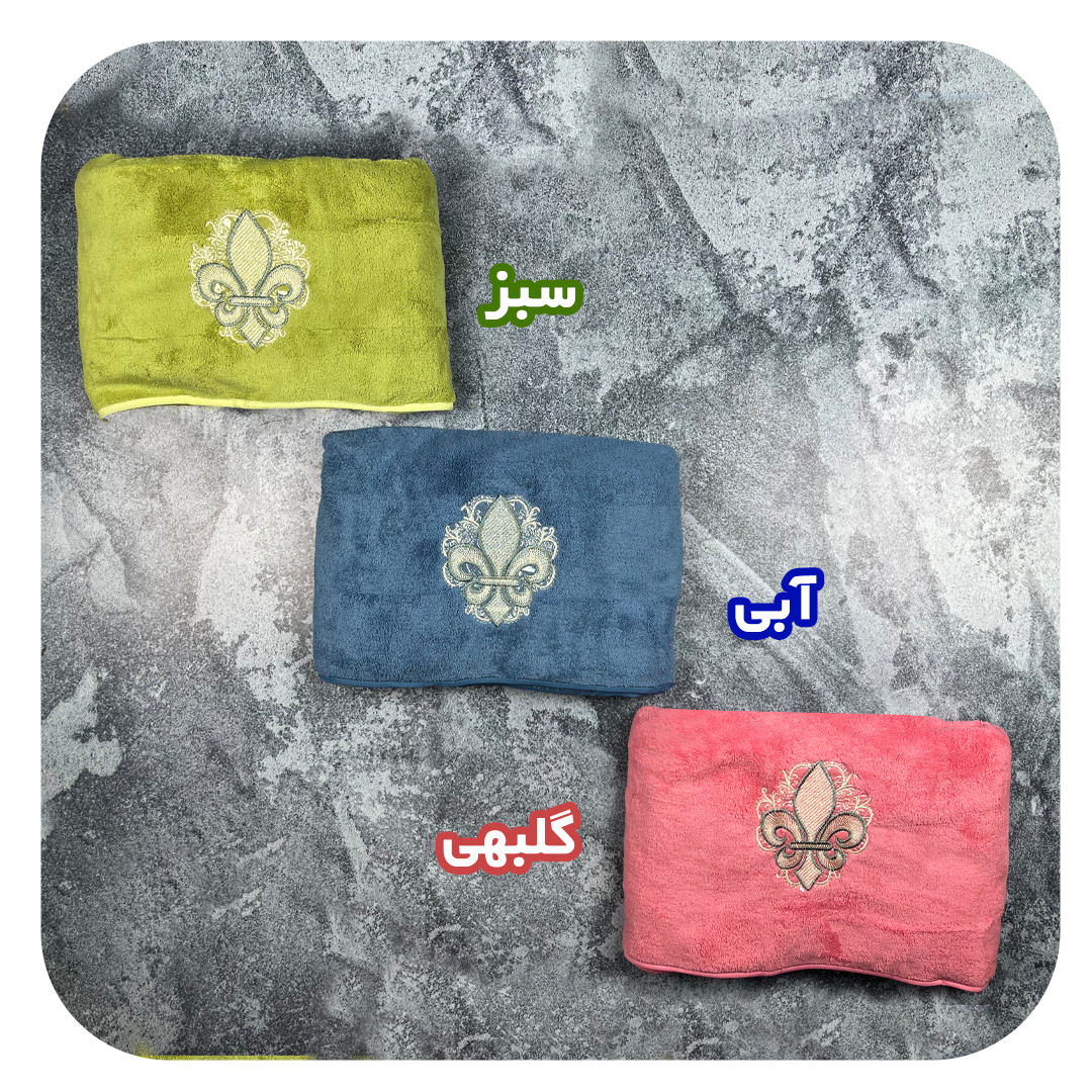 ست حوله استخری به همراه حوله دستی پولیشی طرح سوزنی