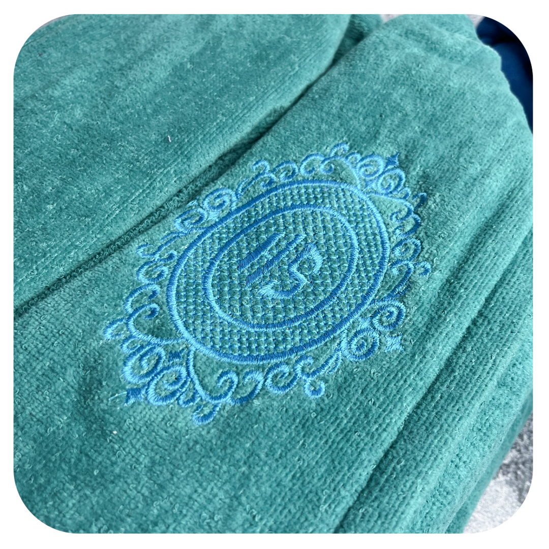 ست حوله استخری به همراه حوله دستی پولیشی طرح سوزنی