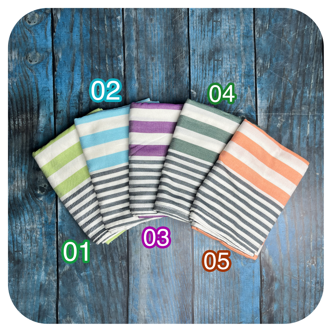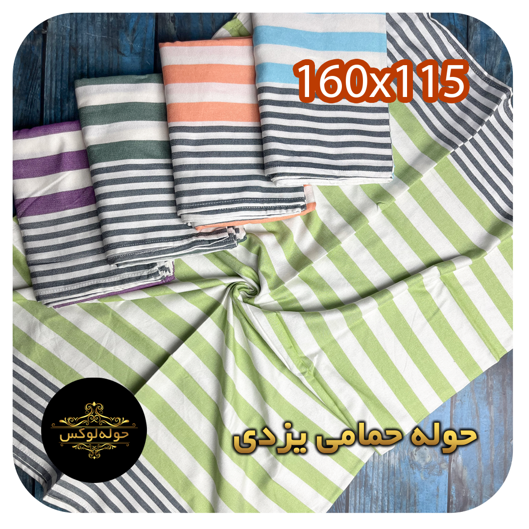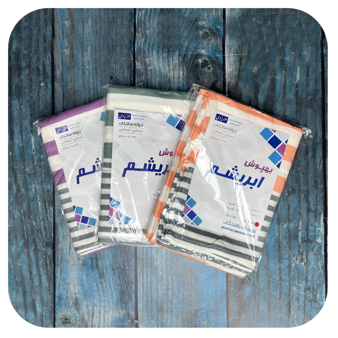 ست حوله استخری به همراه حوله دستی پولیشی طرح راه راه