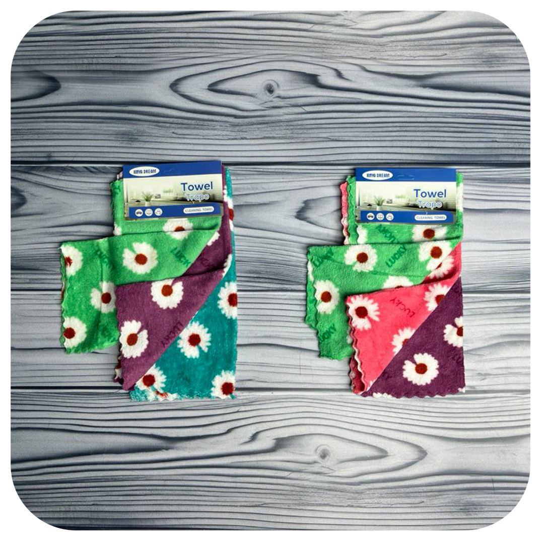 دستمال بسته سه عددی/وارداتی/پولیشی/مناسب نظافت و گردگیری/بادوام و باکیفیت/ارسال رنگ به صورت رندوم هست