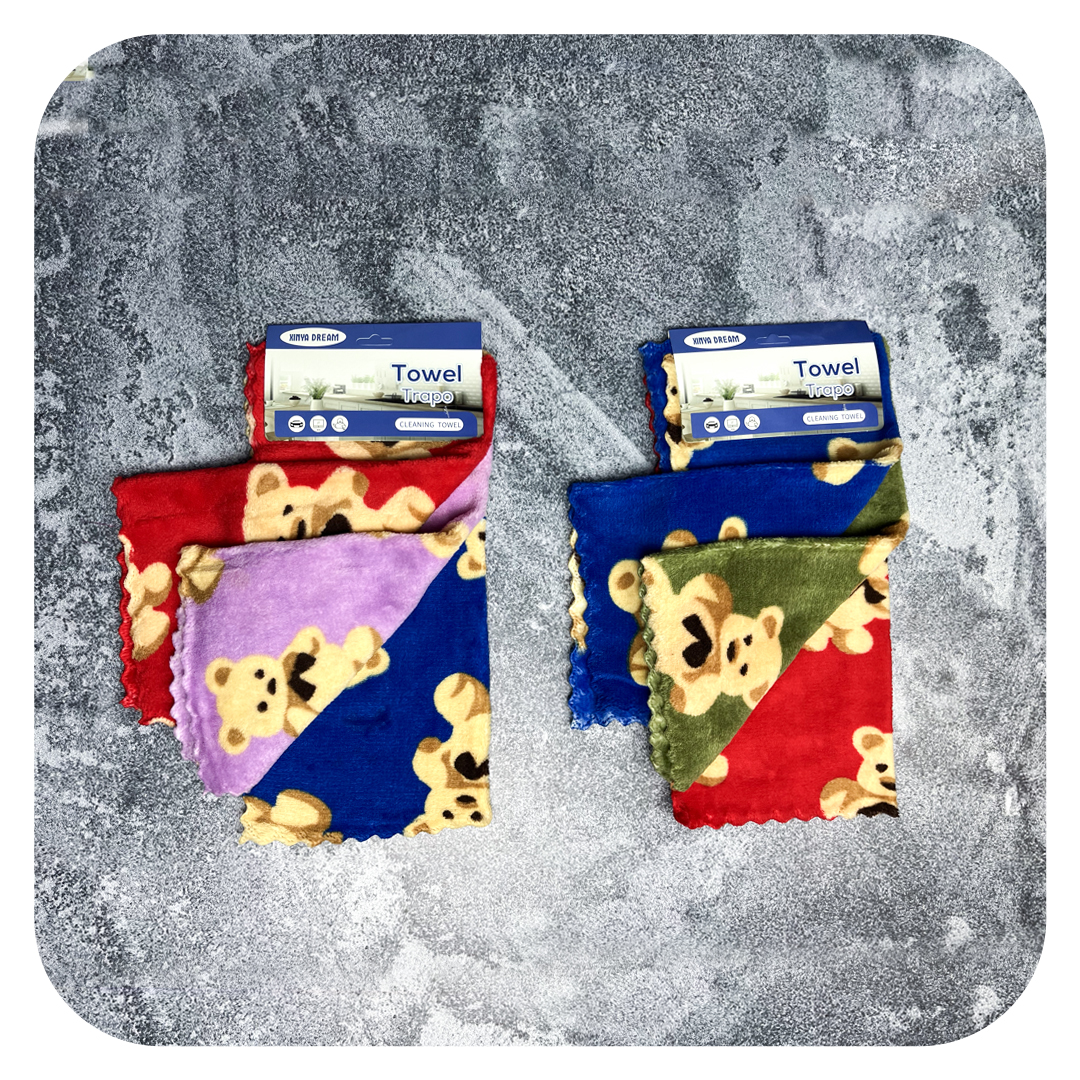 دستمال نانو طرح خرسی30x30بسته سه عددی