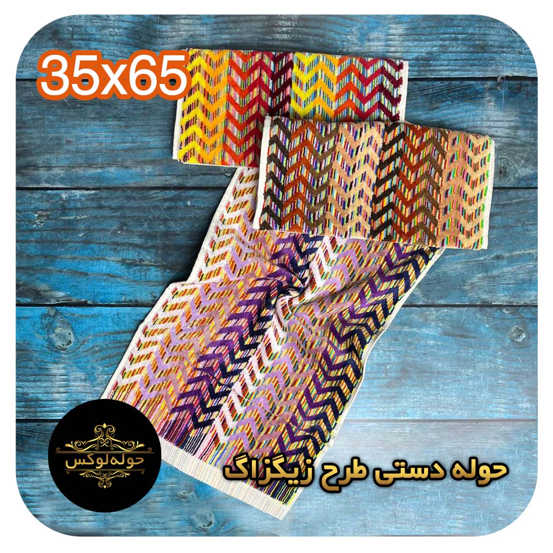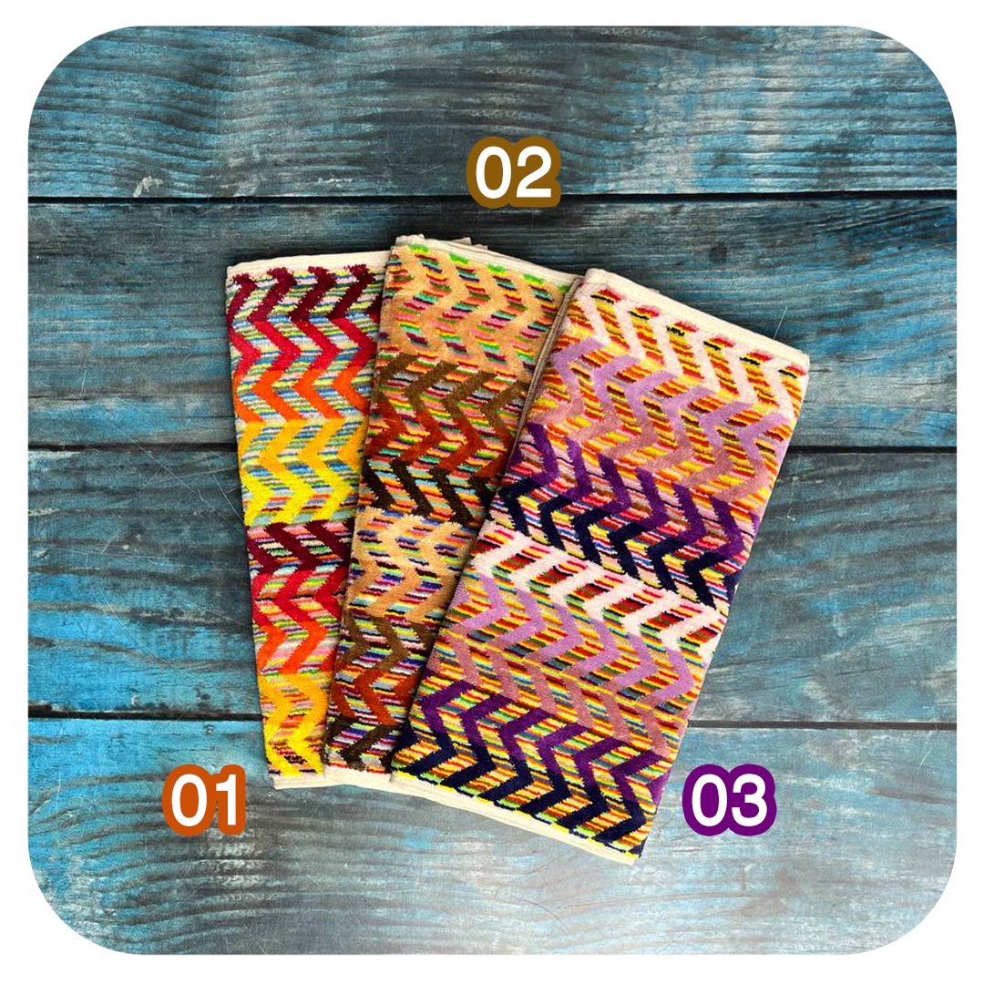 ست حوله استخری به همراه حوله دستی پولیشی طرح زیگزاگ ریز