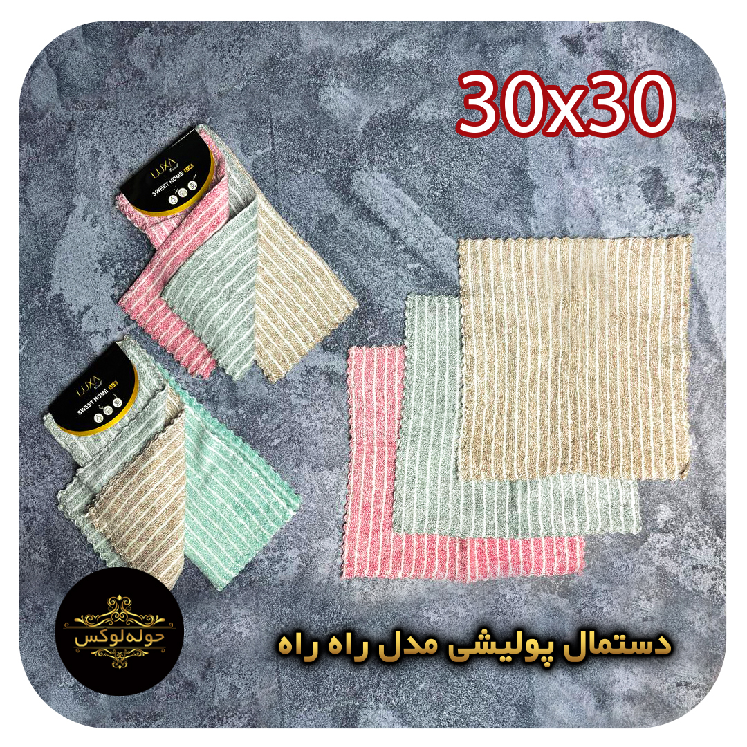 دستمال پولیشی مدل راه راه30x30بسته سه عددی