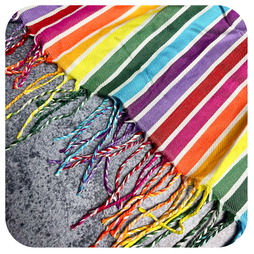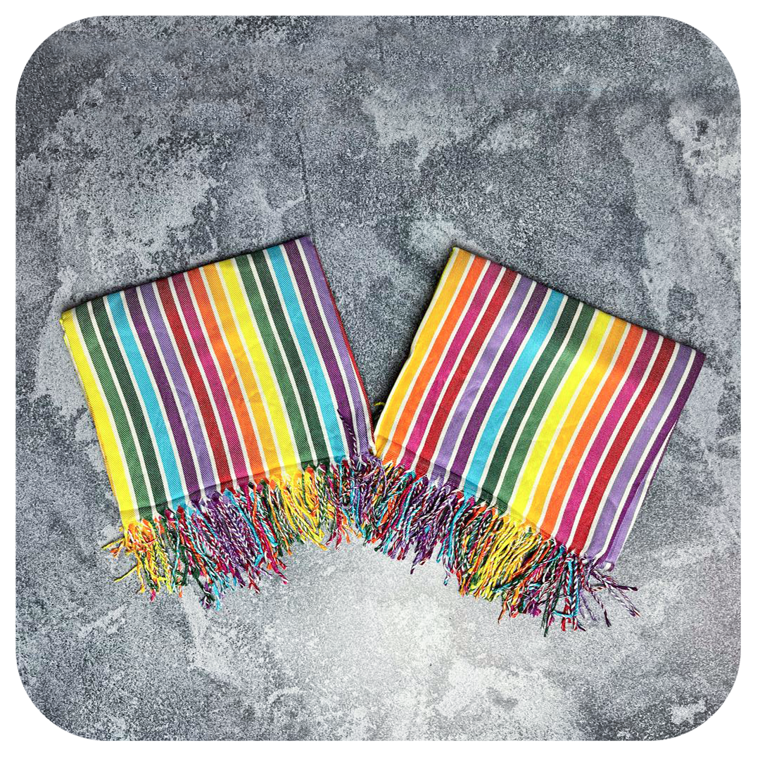 حوله یزدی طرح رنگین کمان /جنس صد در صد نخ/با ریشه