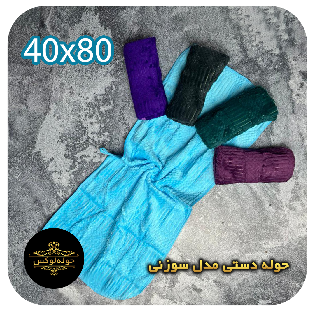 ست حوله استخری به همراه حوله دستی پولیشی طرح سوزنی