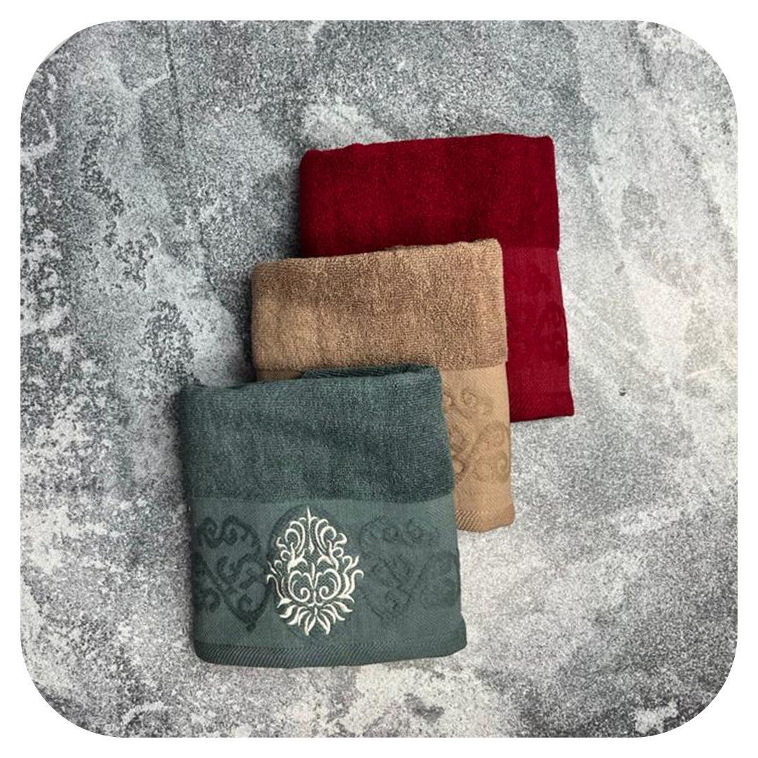 ست حوله استخری به همراه حوله دستی پولیشی طرح سوزنی