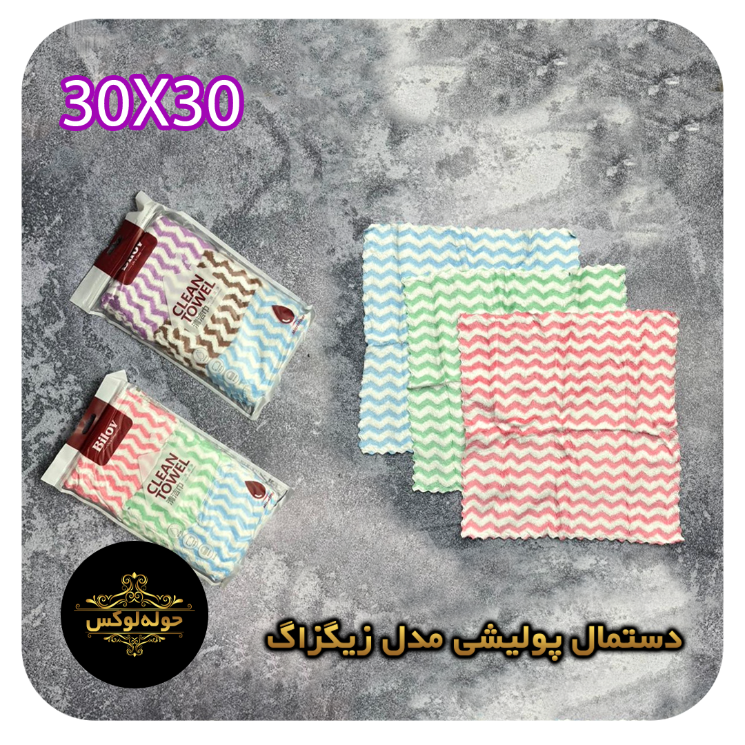 دستمال نظافت پولیشی مدل زیگزاگ بسته سه عددی30x30