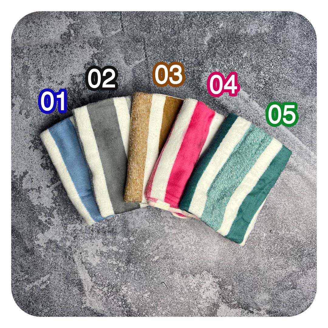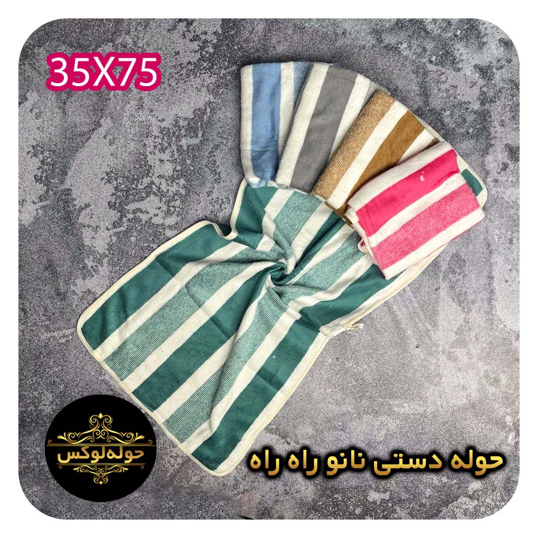 ست حوله استخری به همراه حوله دستی پولیشی طرح راه راه